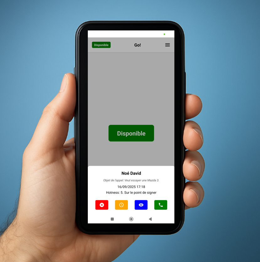 Comme le robot est sur mobile, il est disponible partout et à n'importe quel moment. Dès que le commercial a 10 minutes de libres, il peut prospecter. Rien à préparer, juste ouvrir l'application et appuyer sur le bouton "GO".